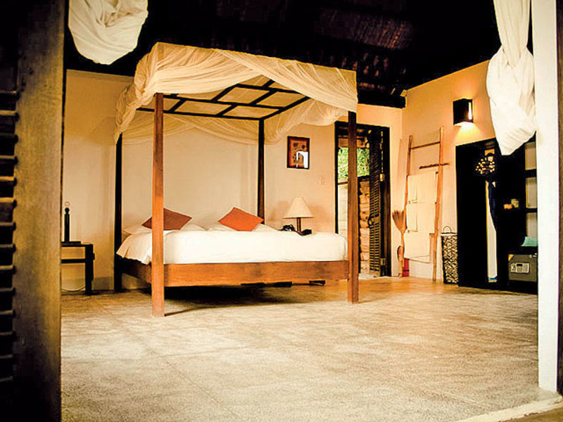 bungalovy postavené z přírodních materiálů s doškovou střechou. Verandah pokoje (30 m2) směrované k moři jsou vybaveny stropním ventilátorem, chladícím boxem a terasou. K dispozici další typy nadstandardních bungalovů, které mohou mít venkovní koupelnu.