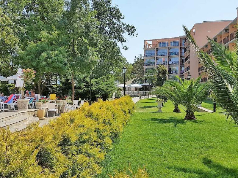 Poloha: Kompletně zrekonstruovaný a velmi oblíbený hotel, situovaný v rozsáhlé zahradě plné zeleně, se nachází uprostřed rušného obchodního a zábavního centra nejrušnějšího letoviska Bulharska - Slunečného pobřeží, ve vzdálenosti cca 200 m od pláže, 800 m od aquaparku Action a cca 30 km od letiště. Spojení do blízkého historického městečka Nesebr zajišťuje turistický minivláček a místní doprava.