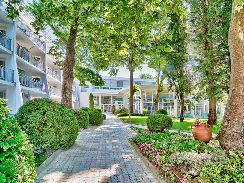 Poloha hotelu:Oblíbený, rozsáhlý hotelový resort (v roce 2014 prošel kompletní rekonstrukcí) jen cca 500 m od centra elegantního letoviska Albena a cca 900 m od krásné, písečné pláže která je pohodlně dostupná turistickým minibusem zdarma. Nákupní možnosti a zábava (obchody, restaurace, bary, kavárny, tradiční trh, sportoviště, dětská hřiště, půjčovny automobilů a motocyklů) cca 500 m od hotelu. Mezinárodní letiště Varna je vzdáleno cca 40 km.