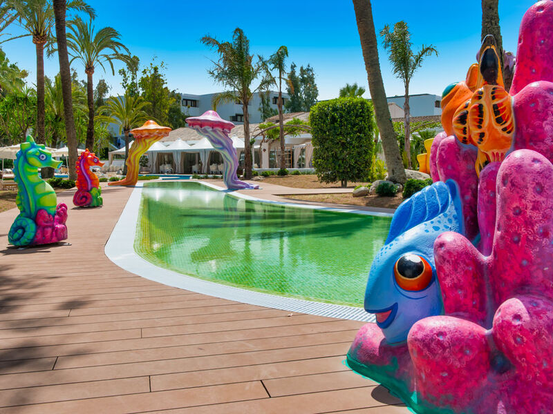 Živý prázdninový aparthotel disponuje 303 pokoji, rozmístěnými v šesti moderních budovách, zasazených v pečlivě udržované zahradě. Klientům je k dispozici vzdušná vstupní hala s recepcí, trezory, směnárnou, turistickými informacemi a lobby barem, hlavní restaurace, internetový koutek (za poplatek), WiFi připojení (30 minut denně zdarma, ostatní za poplatek), společenská místnost se satelitní TV, úschovna zavazadel, herna, mini klub, junior klub, teenager klub, mini market, stylové SPA centrum, dva velké venkovní bazény, dětský bazén, snack bar u bazénu, opalovací terasa (lehátka a slunečníky zdarma), dětské hřiště, sportoviště a parkoviště.