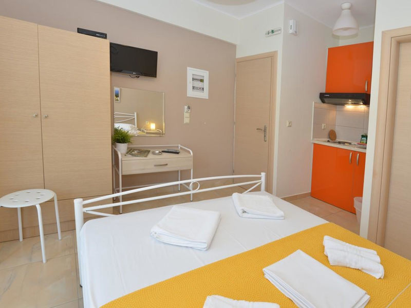 Penzion VILLAGGIO SIOUTIS s bazénem (lehátka a slunečníky u bazénu zdarma) leží v klidném místě mezi olivovými stromy, 350 m od pláže, kam dojdete procházkou mezi olivami. Studia pro 2 osoby jsou vybavena kuchyňským koutem, soc. zařízením, TV, klimatizací v ceně zájezdu, wi-fi připojením zdarma, trezorem a balkónem. U bazénu v areálu penzionu se nachazí malý denní bar. Ubytování uspokojí i velmi náročné klienty.