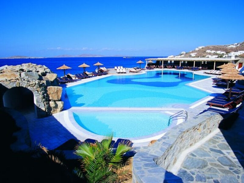 Luxusní hotelový komplex Mykonos Grand and Resort vybudovaný přímo u písečné pláže Agios Ioannis s výhledem na posvátný ostrov Delos. Vzdálenost hlavního města ostrova je 4 kilometry, pohodlně lze dojet místní autobusovou dopravou.