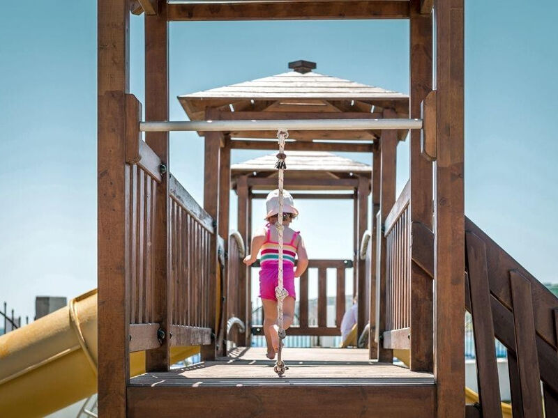 Vyžití pro děti:1 tobogan do vody, miniklub (4-11 let), minidisko, tancování a hry. Oddělená část bazénu pro děti, dětské hřiště, dětská postýlka zdarma (na vyždání). Vybavení pro infanty (nočník, vanička, chůvičky, ohřívač jídla, židlička v jídelně).