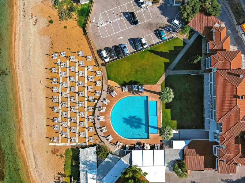 Poloha hotelu:Příjemný menší hotel situovaný v zahradě uprostřed zeleně v klidné oblasti přímo u pláže. U hotelu autobusová zastávka. Tradiční vesnička Nikiti cca 9 km, větší město Neos Marmaras cca 11 km. Soluň (Thessaliniki) cca 110km (90min autem).