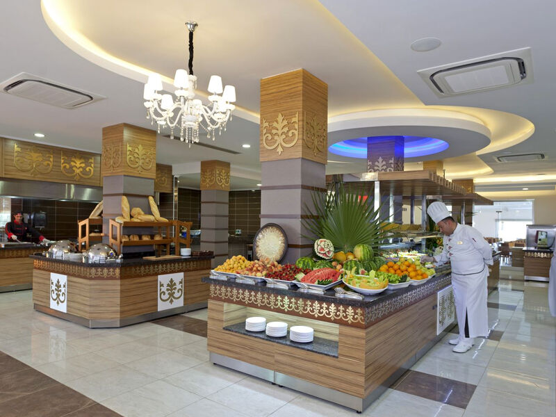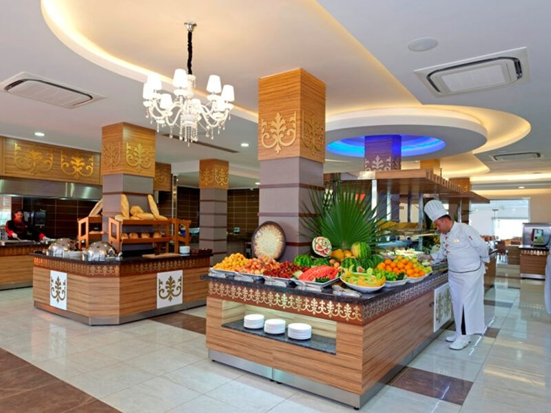 Restaurační zařízeníhlavní restaurace: druhy kuchyně: mezinárodní, turecká, formou bufetu, show cooking, s klimatizací, s terasou, je vyžadováno vhodné oblečení