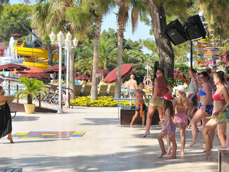 Masáže, turecké lázně, sauna, fitness centrum, aerobik, tenisový kurt, stolní tenis, plážový volejbal, basketbal, vodní sporty, biliard, šipky, šachy, počítačové hry, internetová kavárna, turecká noc, diskotéka, animační program