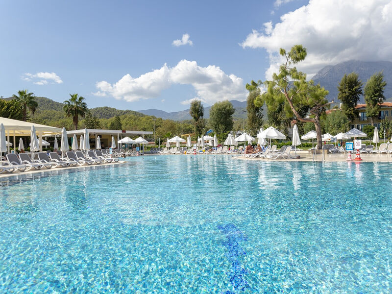 hotelový komplex se nachází v zátoce letoviska Tekirova na okraji pohoří Taurus