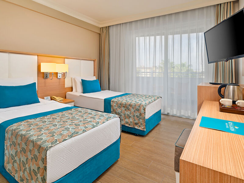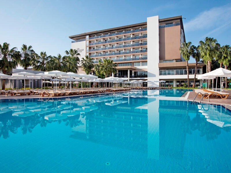 Nedávno zrekonstruovaný hotel tvořený z hlavní a vedlejší budovy přímo u pláže a s menším aquaparkem, se nachází v oblasti Konakli. Asi 15 km od centra Alanye a cca 120km od letiště v Antalyi. Hotel je vhodný jak pro páry, tak pro rodiny s dětmi a nabízí skvělé zázemí a zábavu pro každého. Doporučujeme náročnějším klientům. PLÁŽ Písčitá pláž před hotelem s pozvolným vstupem do moře – u vstupu malé kamínky. Plážové osušky, lehátka a slunečníky zdarma, plážový bar. UBYTOVÁNÍ Velmi vkusně a moderně zařízené standardní dvoulůžkové pokoje jsou vybavené koupelnou – sprcha/vana, WC, fénem, klimatizací, satelitní TV, telefonem, trezorem, minibarem (denně doplňovaný nealko nápoji), setem na přípravu čaje či kávy. Za příplatek – pokoje s přistýlkou, pokoje v hlavní budově, rodinné pokoje. STRAVOVÁNÍ Ultra All Inclusive – snídaně, pozdní snídaně, obědy, svačiny přes den a večeře formou bohatého bufetu. K dispozici i noční občerstvení. Neomezené množství nealkoholických i alkoholických nápojů místní výroby a některých importovaných nápojů 24 hodin. VYBAVENÍ Vstupní hala s recepcí, hlavní restaurace, 4 a la carte restaurací (rybí, italská, asijská a kebab), 5 barů, kavárna, cukrárna zdarma, Wi-Fi ve společných prostorách zdarma, 2 venkovní bazény, dětský bazén, vnitřní bazén, aquapark, miniklub, dětské hřiště, skluzavky, SPA centrum, konferenční místnost, herna, klenotnictví, fitness centrum, kadeřnictví, prádelna, lékař. AKTIVITY diskotéka, TV room, šipky, stolní tenis, tenis, kulečníky, stolní hry, plážový volejbal, fitness, sauna, turecké lázně, masáže (za poplatek), potápění, vodní sporty na pláži (za poplatek).