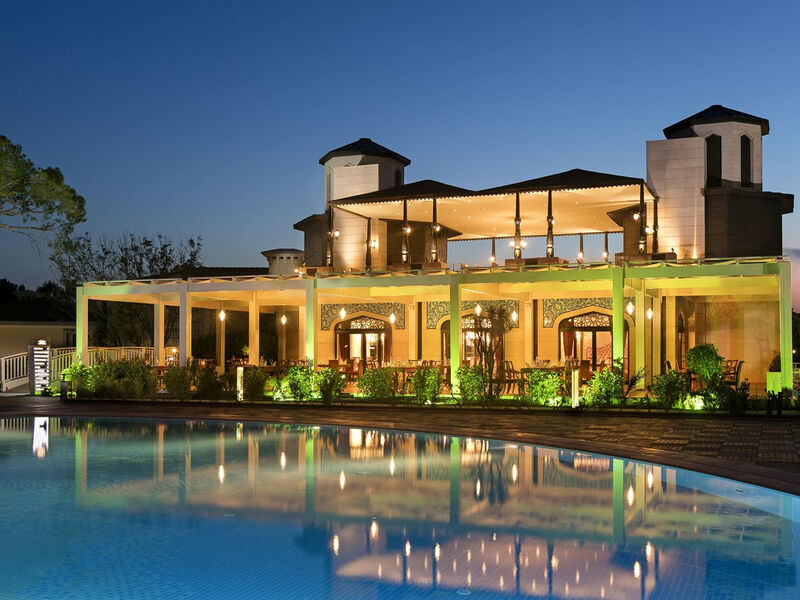 hlavní venkovní bazén, 9700 m2.6 venkovních bazénů Lake House, 1200 m2.vodní park, 6 skluzavek, 1184 m2 (od 01.06.22)vnitřní vyhřívaný bazén (zimní sezóna)vyhřívaný venkovní bazén (zimní sezóna)hlavní restaurace Bosphorusrestaurace a la carte - gril, asijská, rybí, indická, turecká, italská, řeckábistro a 2 cukrárnyitalská restaurace s občerstvením12 barůdiskotékový barvitamin barvinný sklípek, bar Secret Terrace, Tower Roof bar - za poplatektenisový kurt