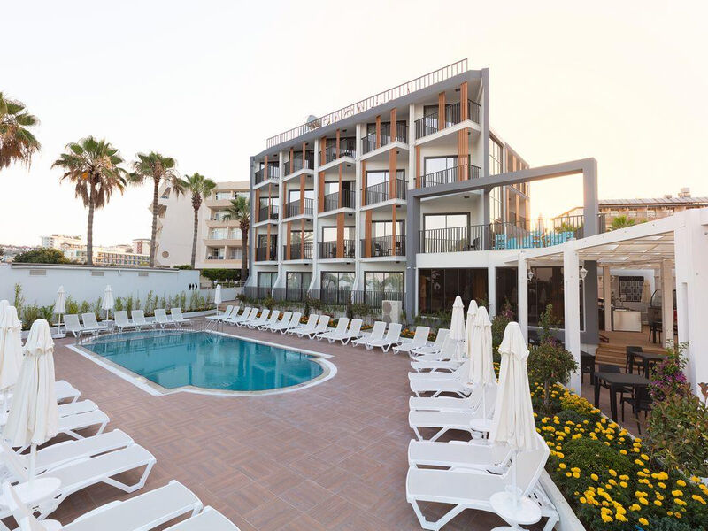 Hotelový komplex dvou budov je umístěn poblíž krásné pláže, cca 1 km od starého centra městečka Side a cca 54 km od letiště. Hotel je určen pouze pro dospělé osoby (16+).